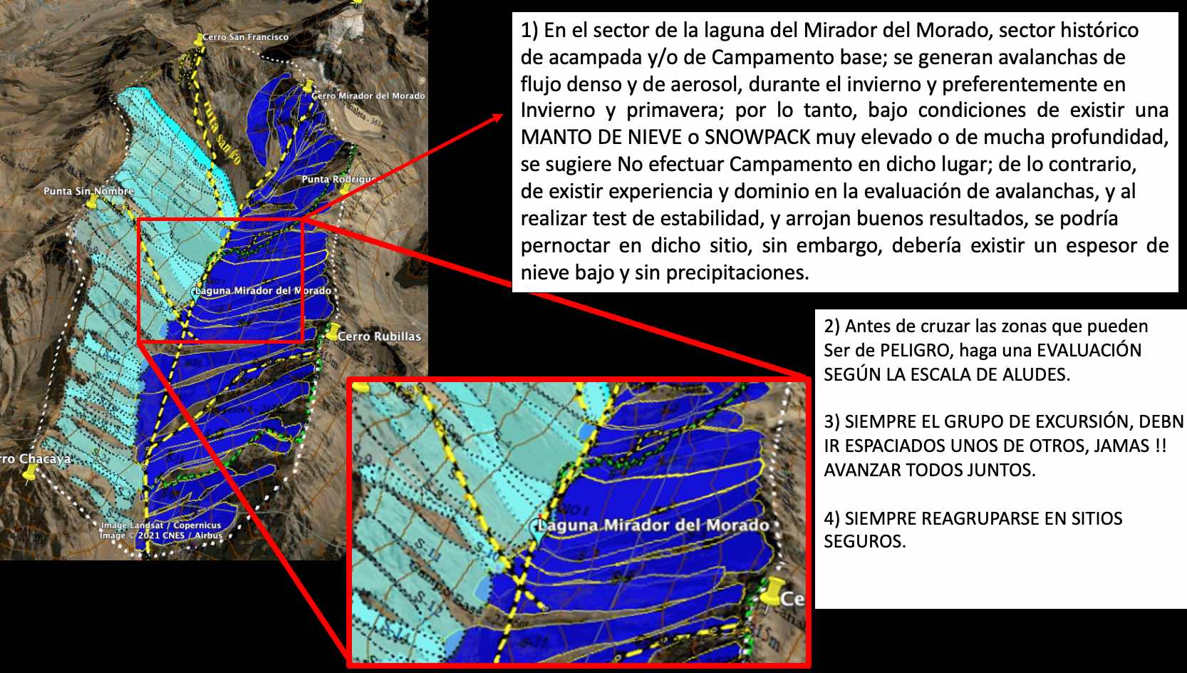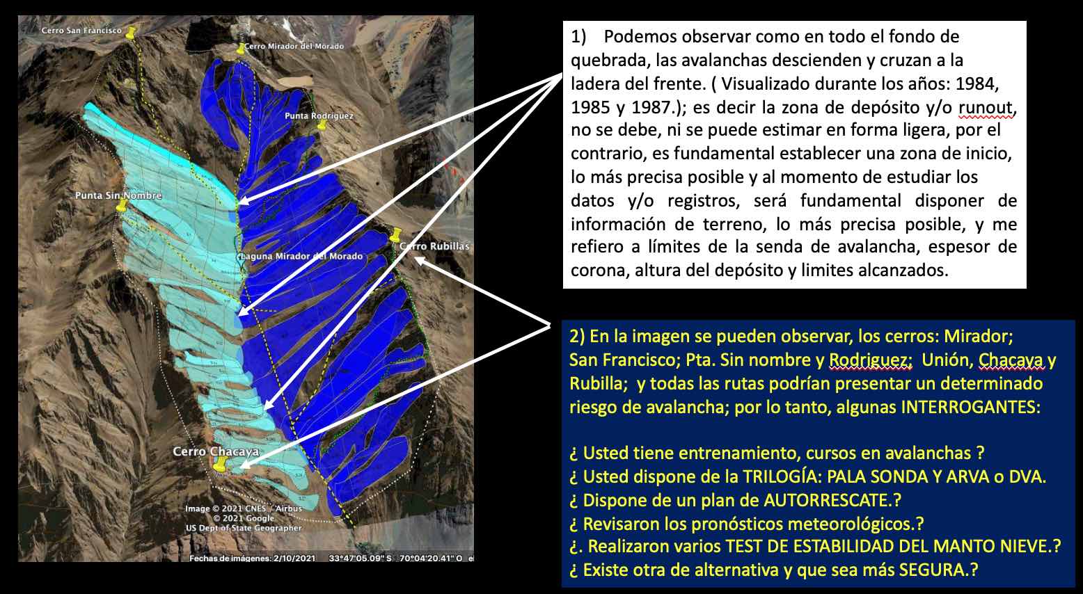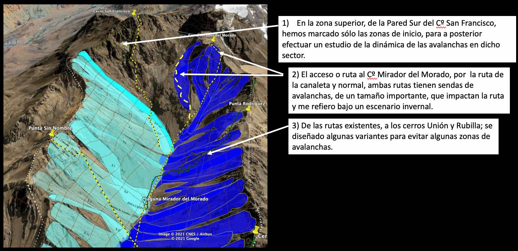 Detalles técnicos de las avalanchas en los CERROS UNION, SAN FRANCISCO, MIRADOR, ETC.