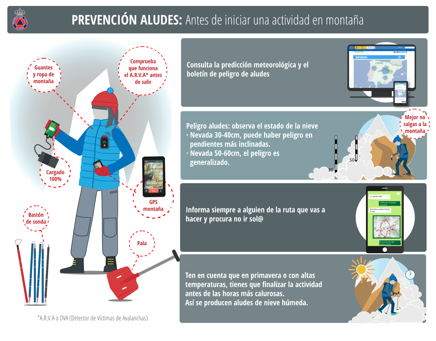 d) Ideal transportar un equipo ARVA O BEPPER, y celdas RECCO en nuestras prendas.