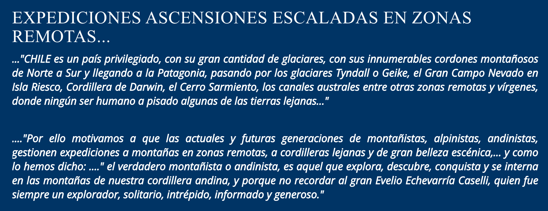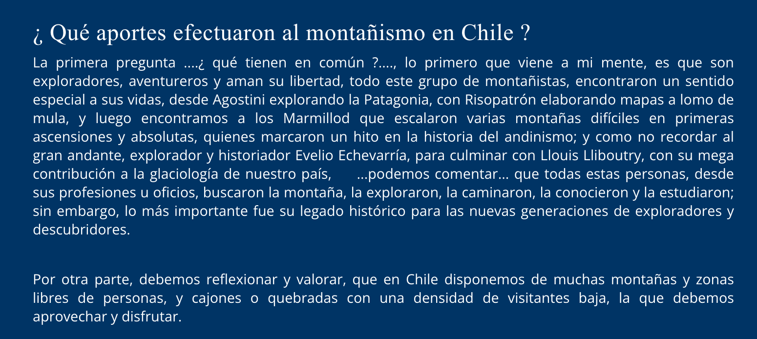 e) Es preciso conocer y tener dominio de nivología y de los test de estabilidad del manto de nieve, previo a internarse por las grandes montañas.