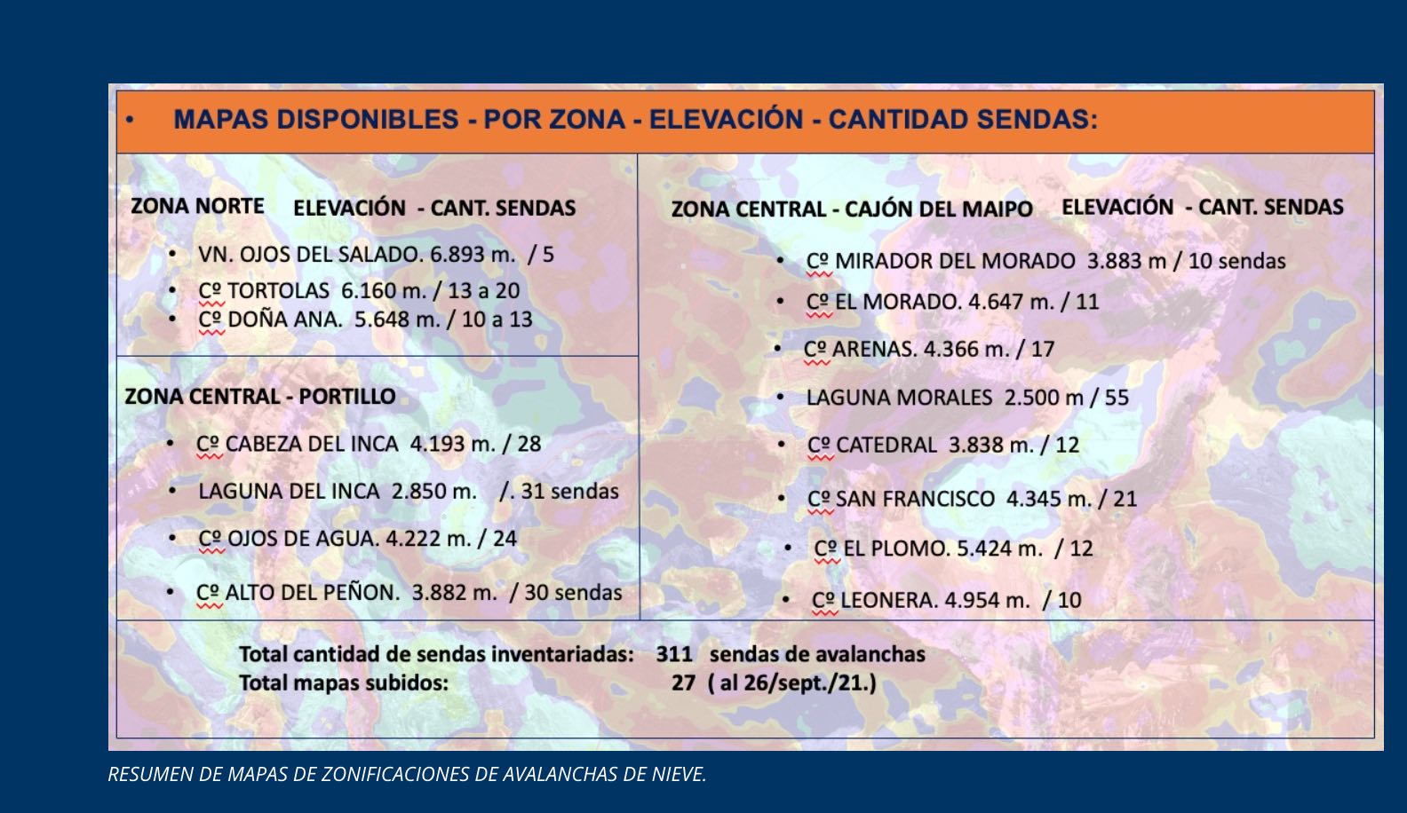 Tiene riesgo de avalanchas "tanto en primavera como en Otoño", subrayó.