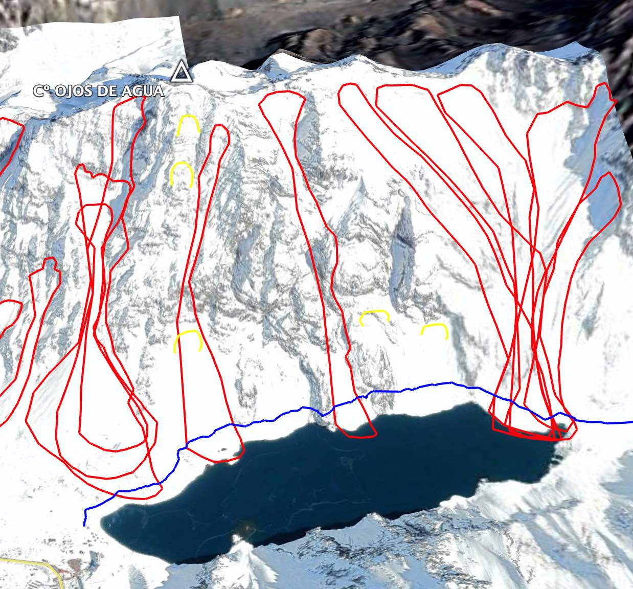 3. En la imagen sólo hemos marcado las sendas del Cº Ojos de Agua, ya que las sendas del Cº Cabeza de Inca, se ubican en otra sección de avalanchas Portillo.