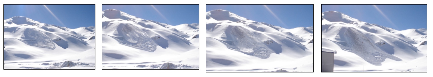 Secuencia fotográfica, de la avalancha que generó el Guanaco; imagen captada por Leandro Poblete, Ing. Medio Ambiente Argentina.