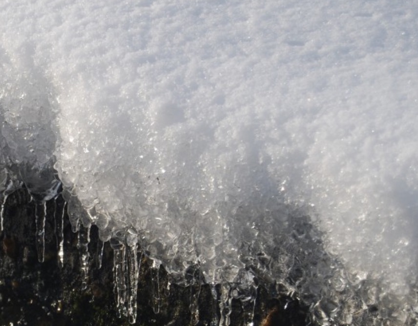 La nieve puede encontrarse en distintos estados, como en la imagen, nieve + hielo y con la percolación el agua escurre por el manto de nieve.