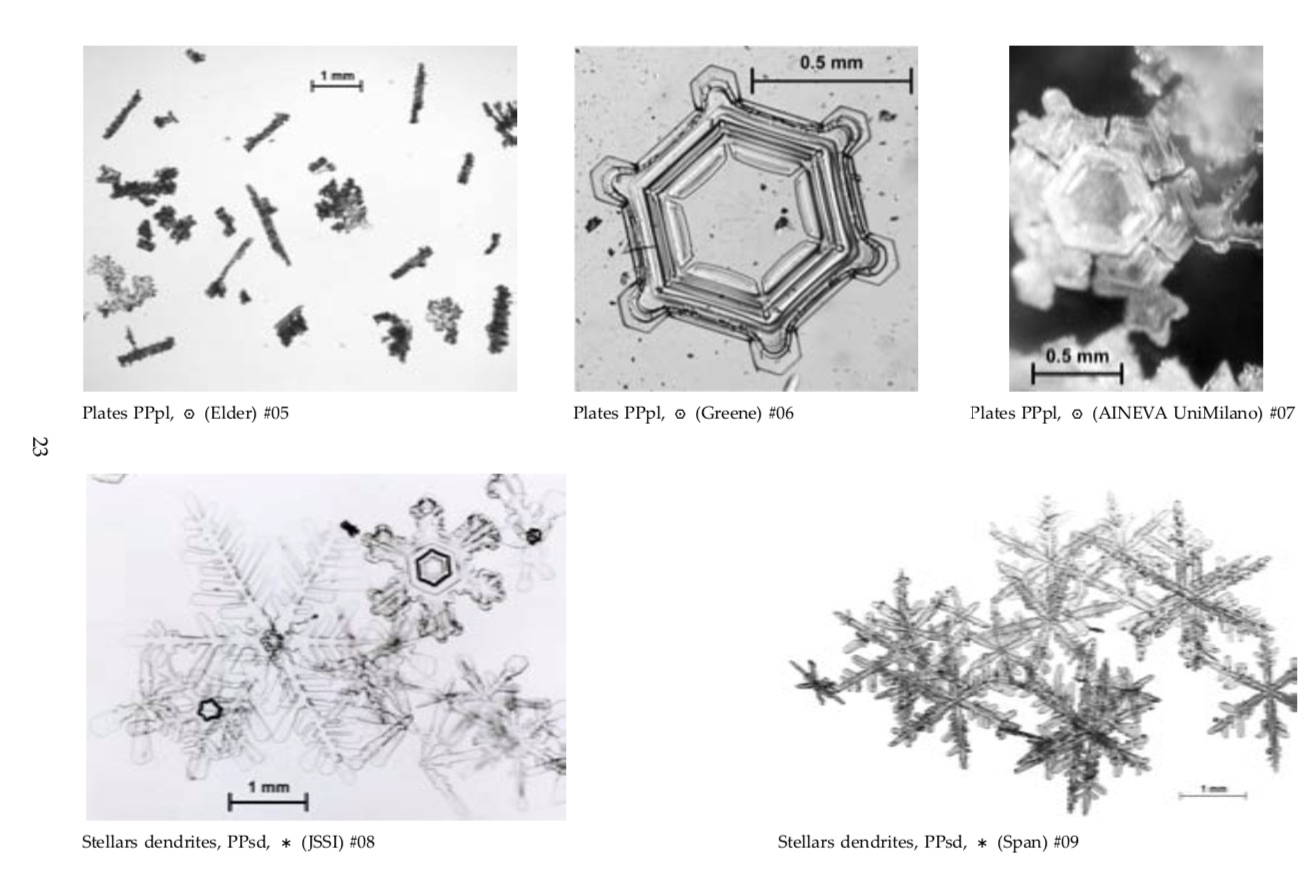 Cristales de nieve al microscopio, de 0.5 mm y 1 mm y de acuerdo a clasificación internacional.