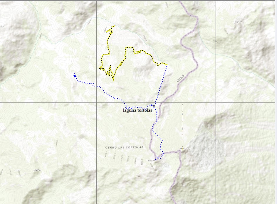 El Cº Las Tórtolas de 6.160 m, se sube normalmente por la ruta normal, la cual tiene su ingreso por la ruta internacional 41-CH y también existe la ruta norte, desde la Mina El Indio, ambas rutas convergen en la laguna del Tórtolas, ubicada a los 5.180 m aprox.; y debo indicar que ambas rutas, durante el periodo invernal y en primavera, se presentan la generación de avalanchas, lo cual depende en un 100% de las precipitaciones de nieve.